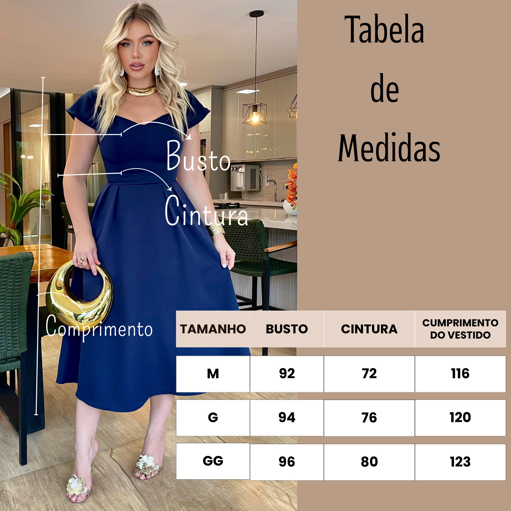 Vestido midi feminino confeccionado em tecido alfaiataria, com caimento estruturado e acabamento refinado. Modelagem elegante, que valoriza a silhueta de forma confortável.